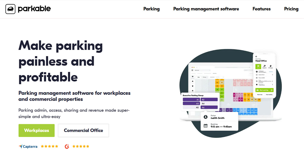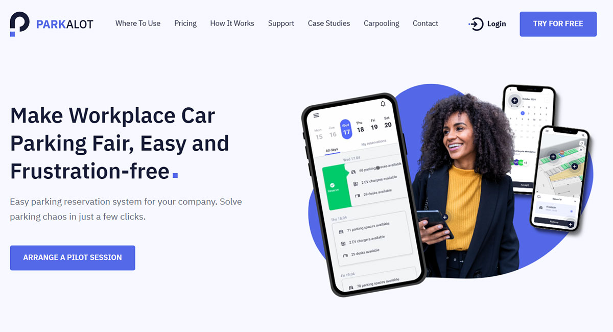 Cloud-based parking management platform that enables organisations to manage shared parking spaces, handle reservations, and set customised booking rules for users.